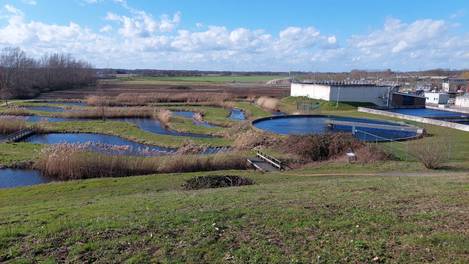 Een helofytenveld kun je op verschillende plekken aanleggen, zolang er voldoende ruimte is. Het systeem heeft namelijk meer oppervlak nodig dan een technische waterzuivering.